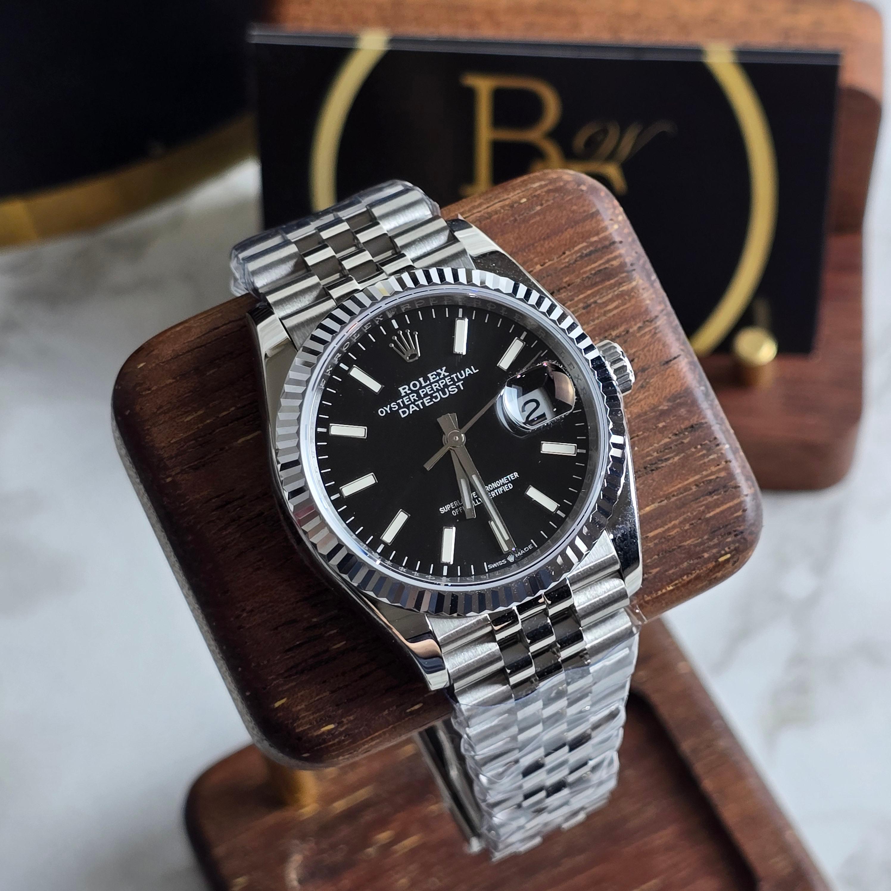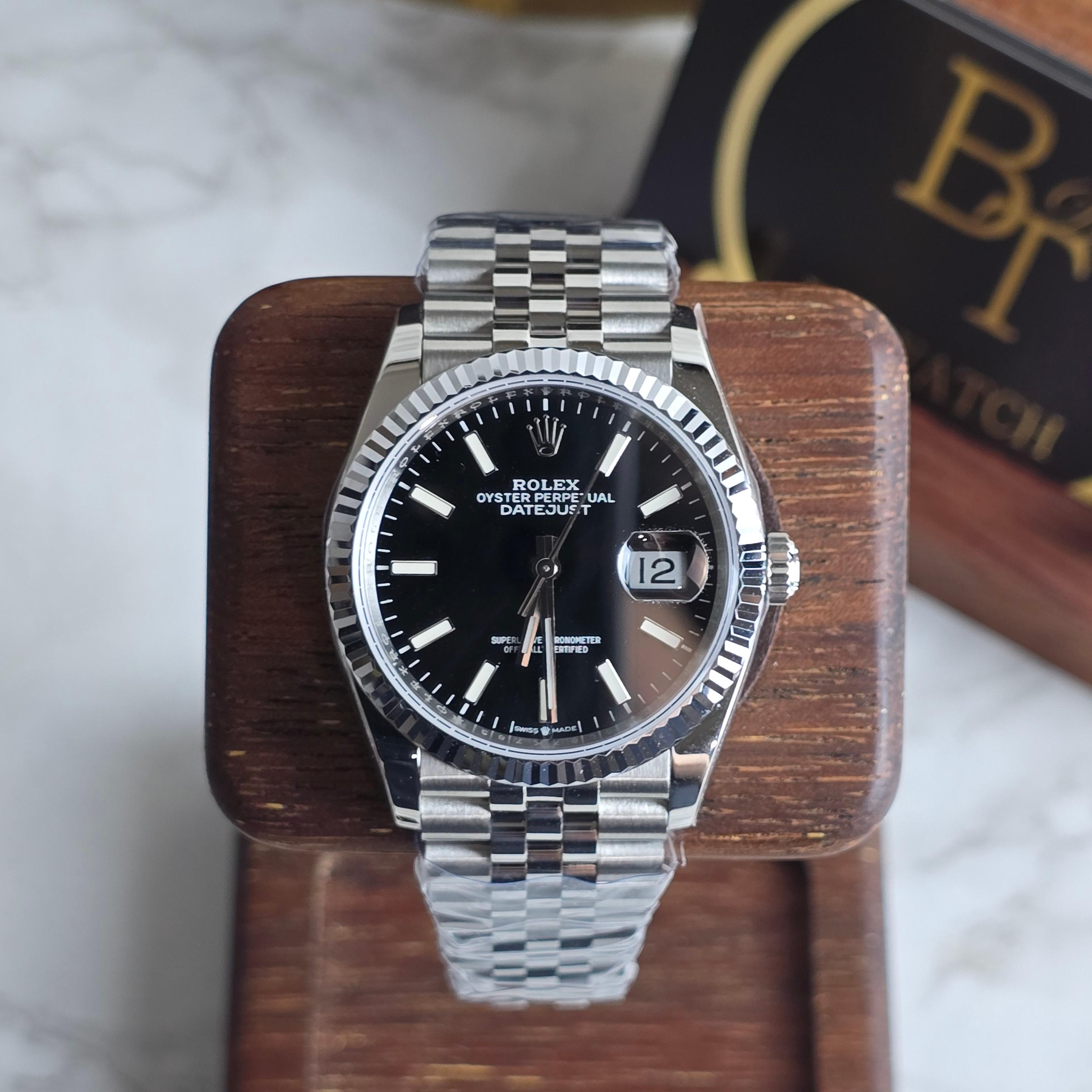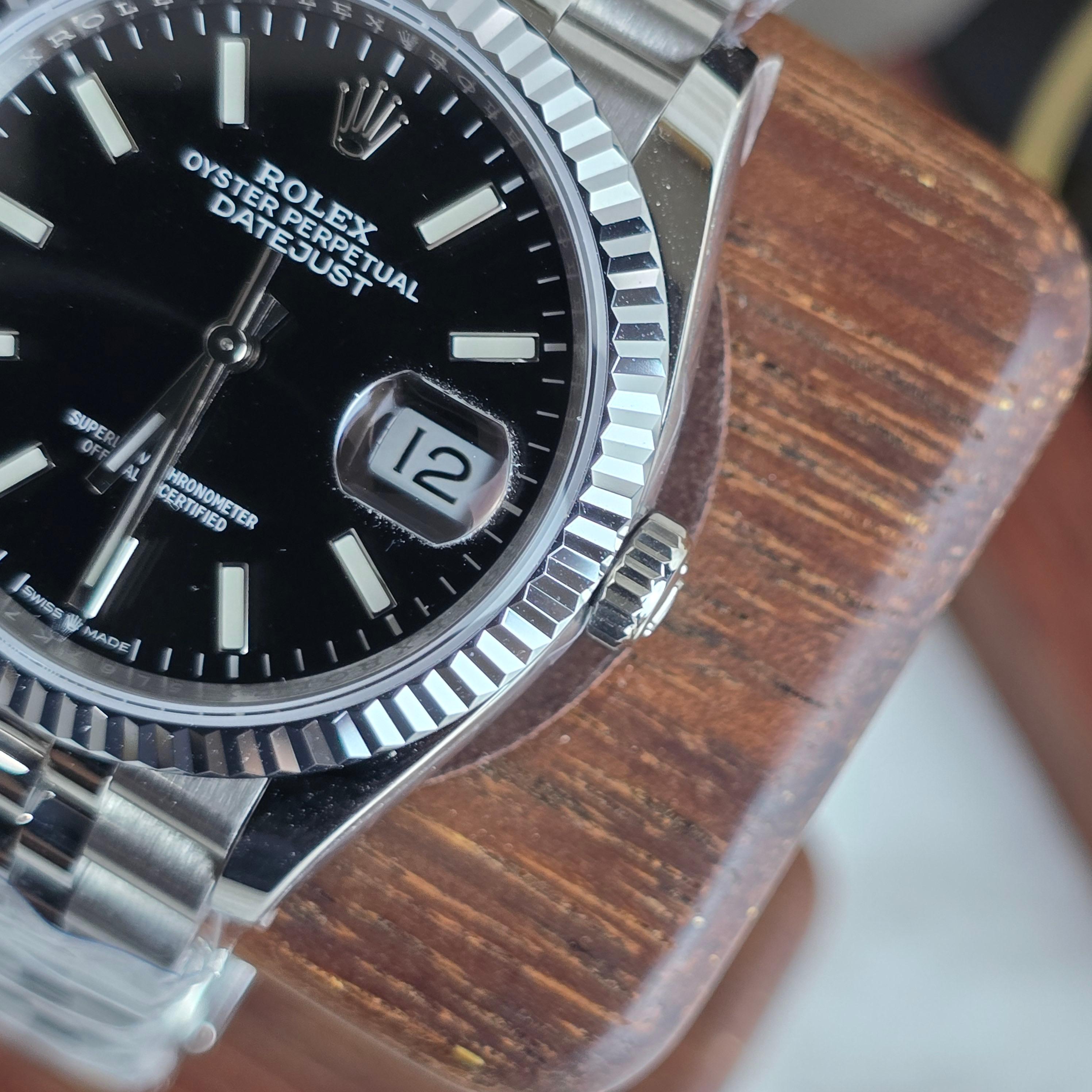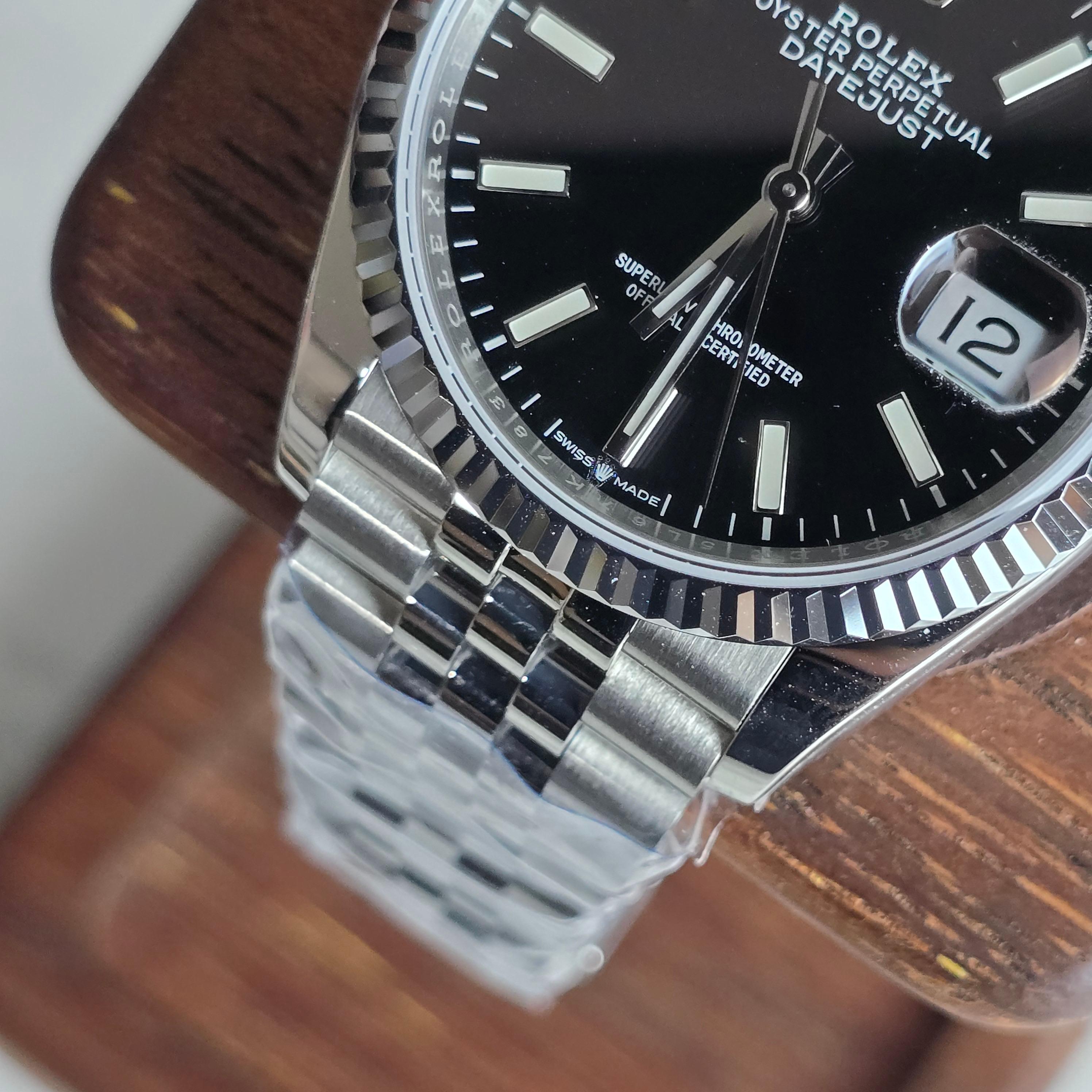 클린공장에서 제작한 이 36mm 블랙 다이얼 데이저스트는 마감 퀄리티와 디테일 구현력에서 높은 평가를 받는 제품입니다. 블랙 다이얼은 깔끔하고 고급스러운 인상을 주며, 야광 인덱스와 핸즈의 디테일도 매우 정밀하게 제작되어 있습니다.